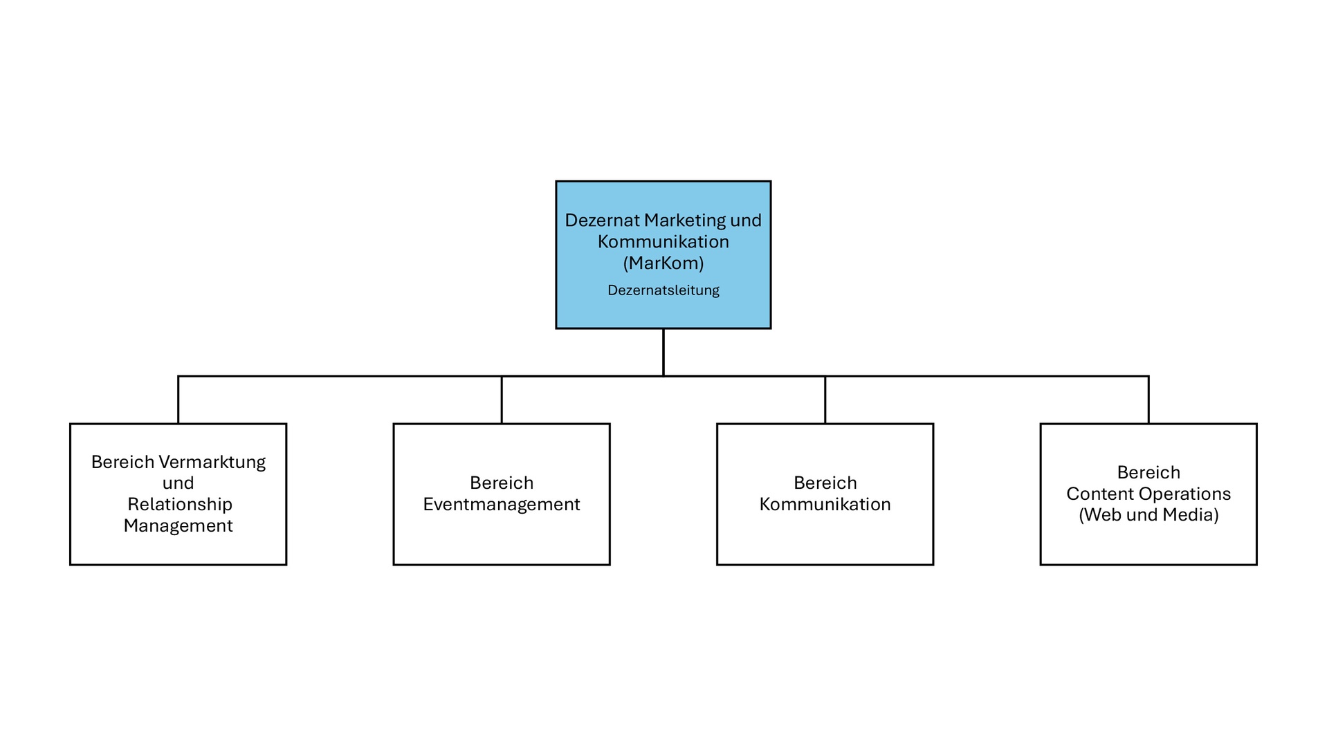 Das Dezernat MarKom ist in vier Bereiche unterteilt.