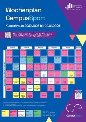 Der CampusSport ist der Hochschulsport der Frankfurt UAS. Auf den Folgeseiten findest du detaillierte Infos zu den Kursen, Treffen und Aktionen auf und abseits des Campus.