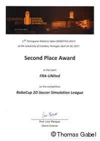 Ende April hat FRA-UNIted an der Robotica 2017 (Roboterfußball-Wettbewerb auf europäischer Ebene) in Portugal teilgenommen und den 2. Platz errungen.