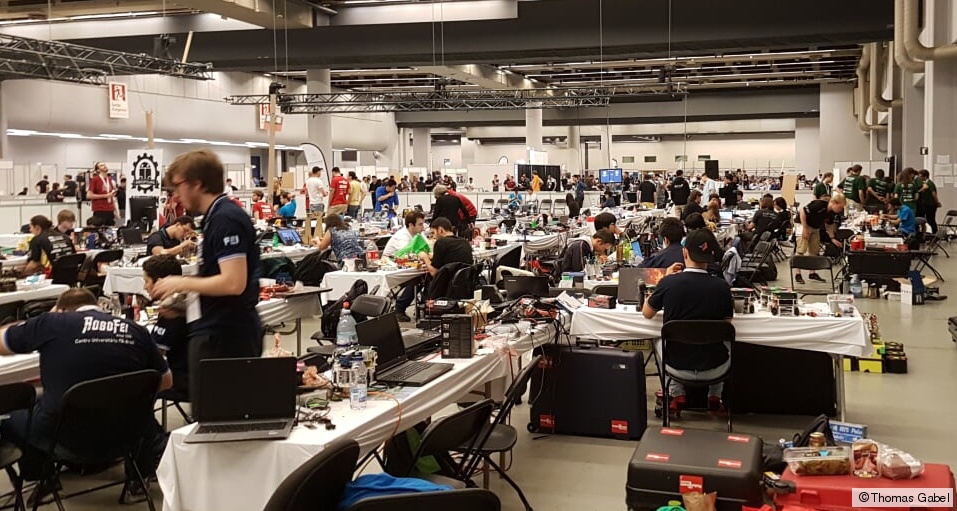 Unser Team ist in Bordeaux eingetroffen, hat die Registrierungsformailtäten in der Messehalle hinter sich gebracht und widmet sich nun letzten Verbesserungen und Optimierungen am Spielverhalten unserer simulierten Roboterfußballer. Außerdem fand die Auslosung für die Testrunde statt; demgemäß wird FRA-UNIted zunächst gegen den amtierenden Weltmeister Helio sowie gegen das iranische Team Hades antreten müssen.