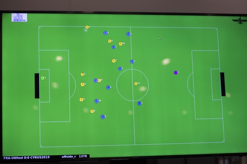 Am heutigen Vorbereitungstag hat unser Team als eines der ersten mit Erfolg seinen Kurztest (1/10 der Spielzeit) absolviert. Hierbei geht es nur darum, die grundsätzliche Lauffähigkeit der fußballspielenden Software-Agenten unter Beweis zu stellen und nachzuweisen, dass FRA-UNIted in der automatisierten Spielumgebung als ganzes Team durch die Offiziellen ohne Probleme gestartet und wieder beendet werden kann.