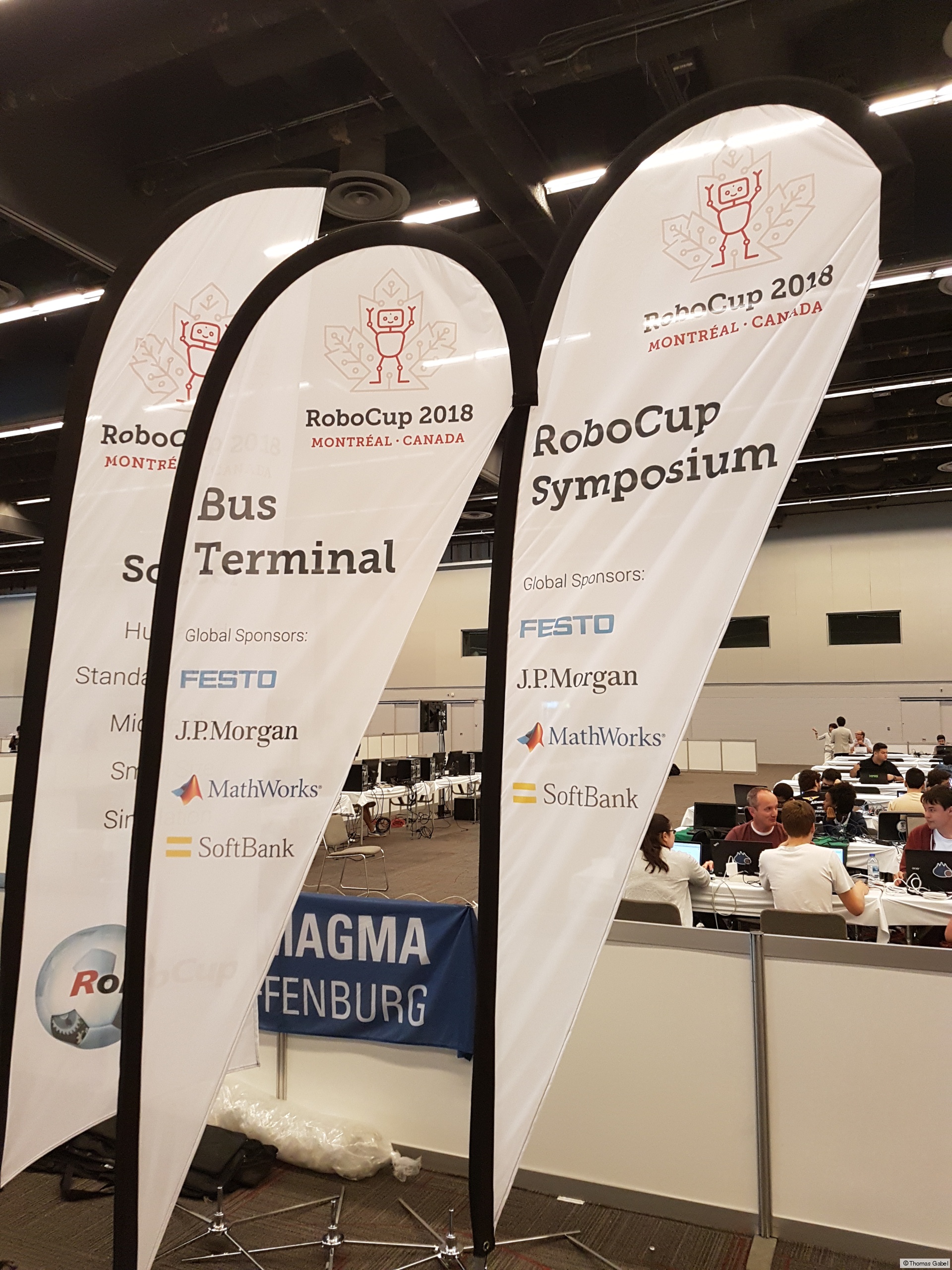 FRA-UNIted ist am gestrigen Tag in Montreal, dem Austragungsort der diesjährigen Roboterfußball-Weltmeisterschaft, gelandet. Die Vorbereitungen in den Hallen, in denen die Turniere stattfinden, laufen derzeit auf Hochtouren. Erste Testspiele werden in den diversen RoboCup-Ligen, und so auch in der 2D-Simulationsliga, in der unser Team antritt, voraussichtlich am Sonntag stattfinden.