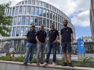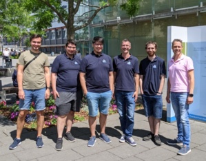 Nach erfolgreicher WM-Qualifikation im Februar dieses Jahres reist FRA-UNIted in der kommenden Woche nach Bordeaux (Frankreich), wo am 04.07.2023 die 26. Roboterfußball-Weltmeisterschaft eröffnet werden wird. Auf dem Foto sind die Teammitglieder Berkan Eren, Eicke Godehardt, Thomas Gabel und Fabian Sommer zu sehen.