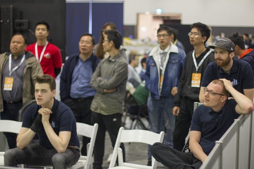 Die heutige finale Gruppenrunde (8 Teams, jeder gegen jeden) war an Dramatik kaum zu überbieten. Nach einem Auftaktsieg gegen HfutEngine (China) und einer Niederlage gegen Titelfavoriten Helios (Japan), stand es in der dritten Partie gegen Hillstone (Japan) bis kurz vor Schluss 1:1. In den letzten 100 Millisekunden der Partie musste unser Team noch den 1:2-Gegentreffer hinnehmen. In den folgenden drei Spielen kämpfte sich FRA-UNIted mit drei Siegen ins Turnier zurück. Nach einem abschließenden 0:0 gegen MT2017 (China) belegten wir damit den 2.Platz in dieser Gruppe.