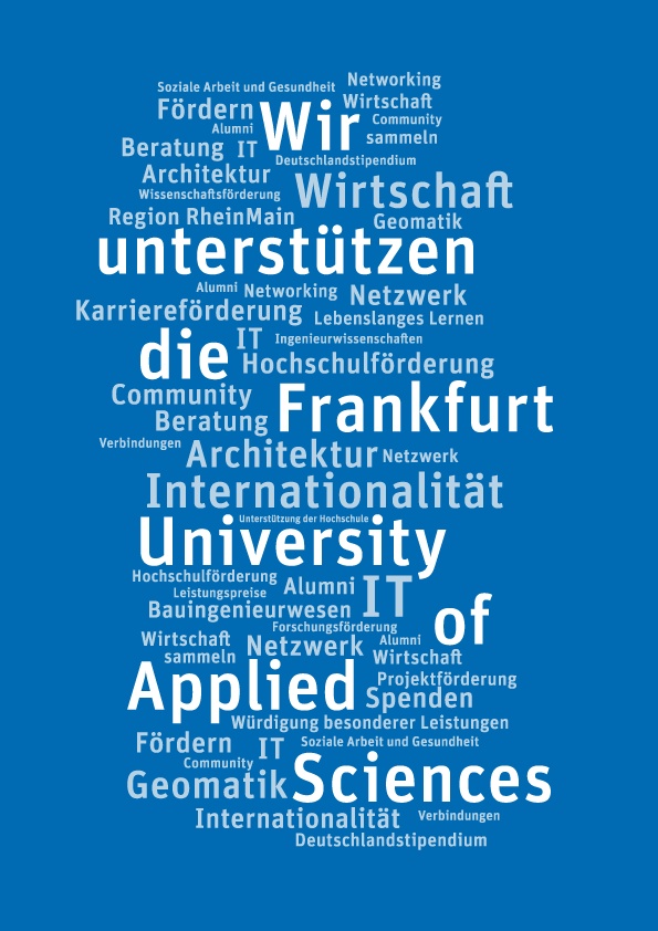 In unserem Förderverein engagieren sich Unternehmerinnen und Unternehmer, Vertreterinnen und Vertreter von Institutionen, Verbänden und Privatpersonen, Alumni und Emeriti, die sich der Frankfurt University of Applied Sciences verbunden fühlen und dies durch ihre Mitgliedschaft dokumentieren und bekräftigen.
