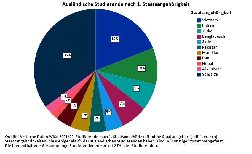 - Hoher Anteil ausländischer Studierender an allen Studierenden im Masterstudium („im Bereich der Top-Performer des eigenen Clusters“)