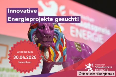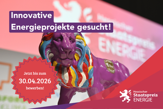 Das Hessische Wirtschaftsministerium stellt für die Gewinner insgesamt Preisgelder von bis zu 53.500 € zur Verfügung. Einfach online Konzept einreichen und mitmachen! Bewerbungsfrist ist der 30.04.2026. Mehr Informationen unter www.hessischer-staatspreis-energie.de
