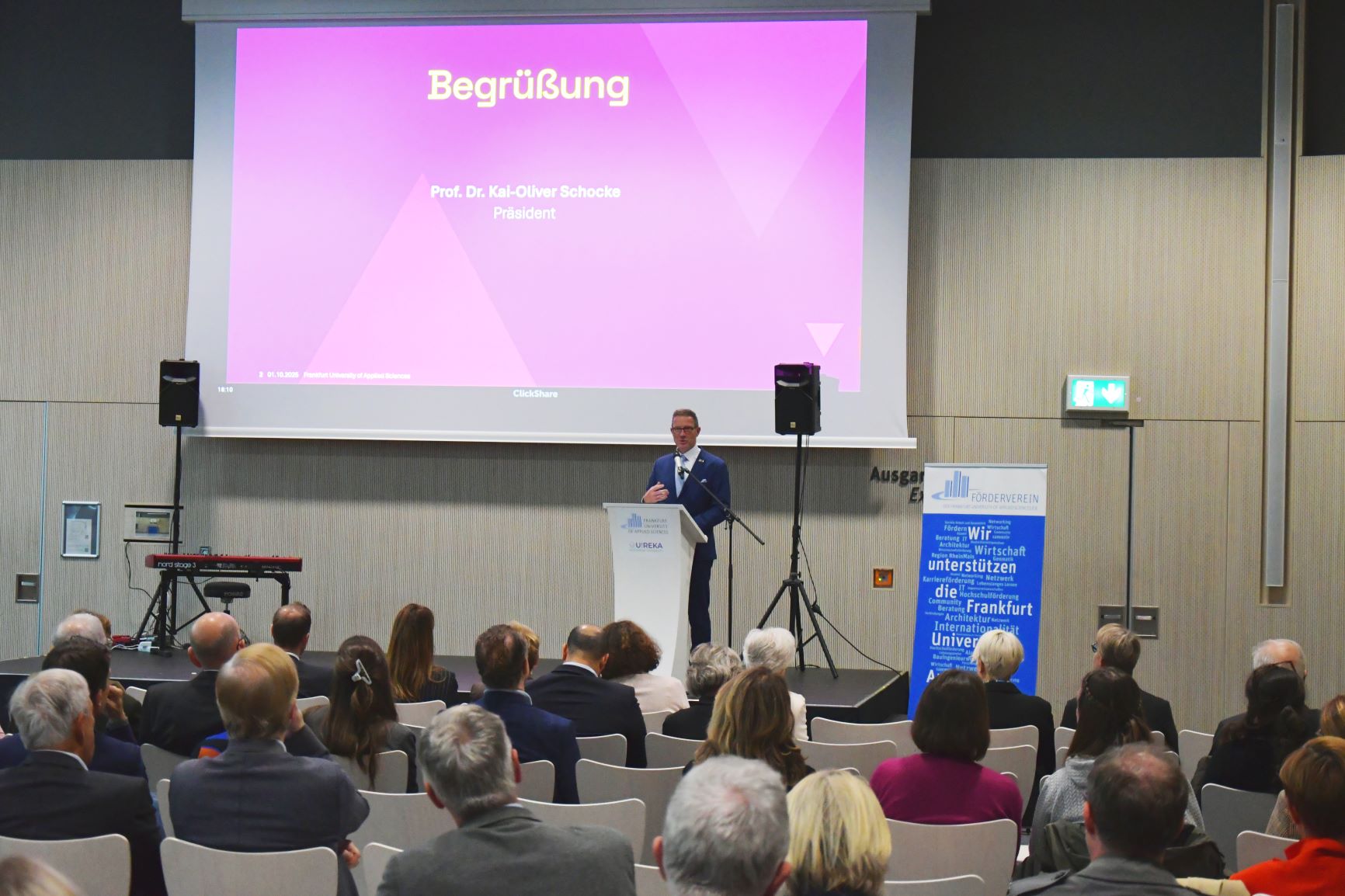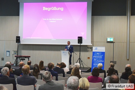 Zugleich würdigte er die Arbeit des Fördervereins der Frankfurt UAS und der Frankfurter Stiftung für Forschung und Bildung, deren Engagement eine unverzichtbare Grundlage für die Weiterentwicklung der Hochschule bilde. Beide Institutionen seien „verlässliche Freundinnen und Freunde“ der Hochschule, die ihr Wissen, ihre Erfahrung und ihr Herzblut einbrächten.