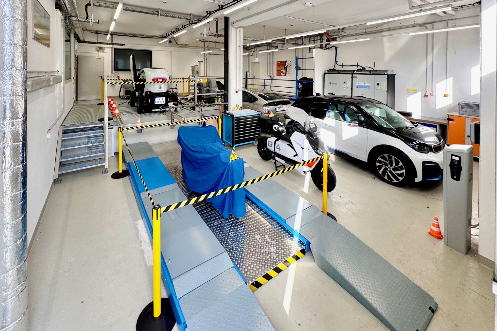 Das E-Mobility-Center mit E-Mobilitätsprüfstand wurde an der Frankfurt UAS im Jahr 2023 eingerichtet und aus Mitteln des Europäischen Fonds für regionale Entwicklung als Teil der Reaktion der Union auf die COVID-19-Pandemie finanziert. Die Einrichtung ergänzt die Ausstattung des bisherigen KFZ-Labors. Herzstück ist ein Allrad-Rollenprüfstand, mit dem sich die Fahrzeug-Achsen elektrisch antreiben und abbremsen lassen. Ergänzt wird er von einer E-Ladeinfrastruktur und einem Trainingssystem für Hochvolt-Technik. Im E-Mobility-Center kann so beispielsweise die Reichweite von E-Fahrzeugen getestet werden und die Rückgewinnung von Energie beim Abbremsen durch Rekuperation. Forschende können im E-Mobility-Center zudem neue Brennstoffzellen- und Batteriekonzepte erproben oder in Langzeitstudien die Lebensdauer von Fahrzeugbatterien untersuchen. Für die Forschung und Lehre im E-Mobility-Center kooperiert die Frankfurt UAS mit verschiedenen Partnern.