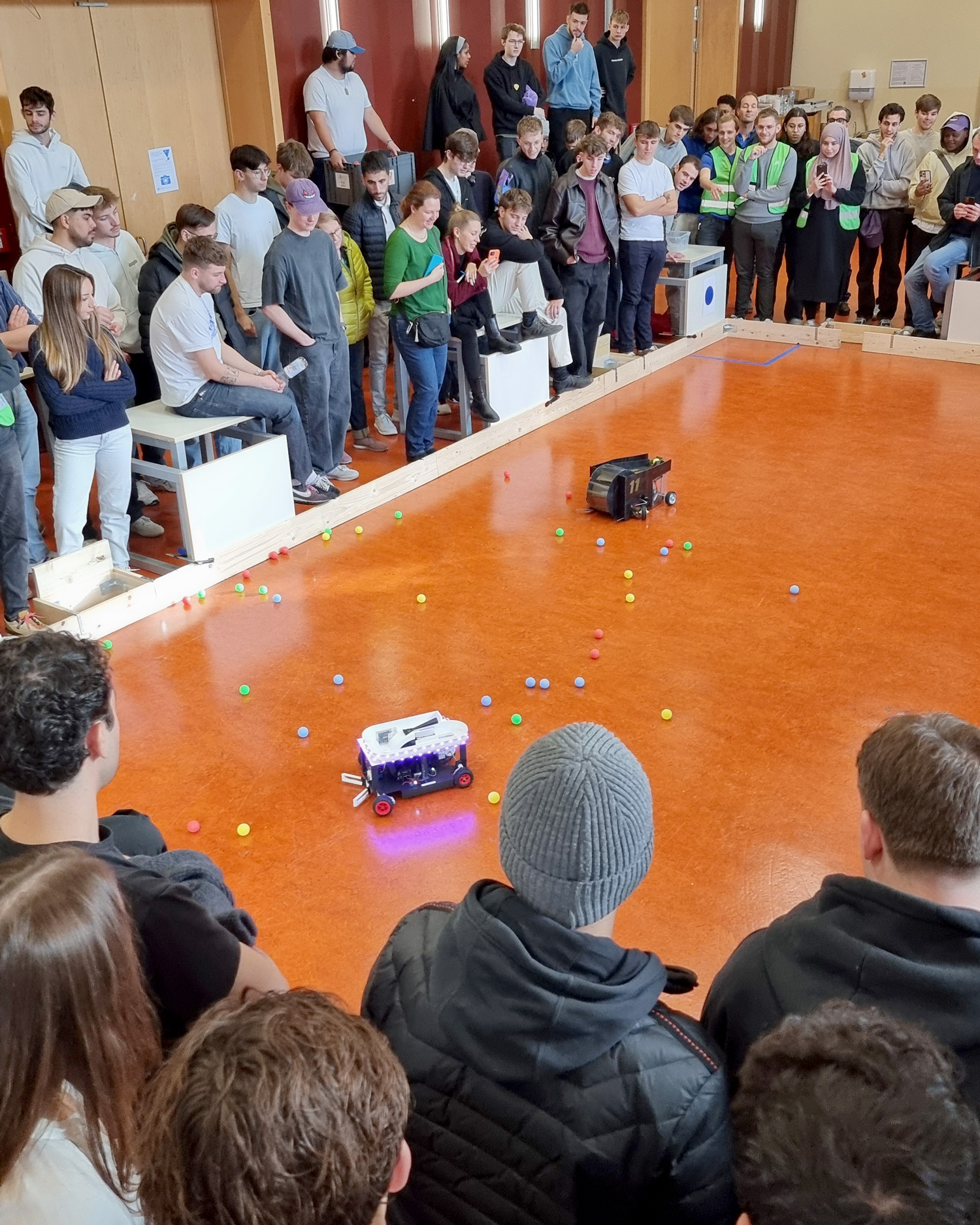Die Anspannung unter den Erstsemester-Studierenden war am 24. Oktober groß: Wer war am besten mit der Fernbedienung? Wie viele Bälle würde man aufsammeln können? Was würden die anderen zum Design sagen? Und am wichtigsten – würde das Fahrzeug überhaupt losfahren?