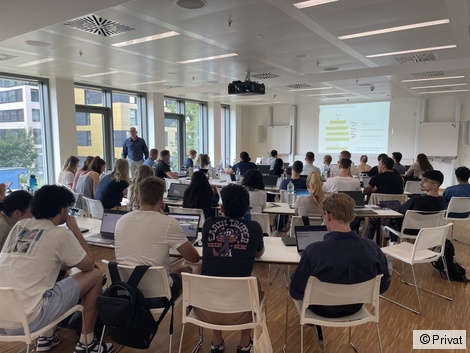 Die Summer University begann mit einer Einführung in internationale Umwelt- und Klimapolitik sowie deren Bedeutung für die Luftfahrt. Expert*innen aus Politik und Industrie berichteten über die Balance zwischen Anwohnerinteressen und Luftfahrt, nachhaltige Mobilitätsstrategien am Flughafen Frankfurt und die Herausforderungen für Fluggesellschaften. Praxisnah wurde das Programm durch einen Besuch des neuen Terminals 3 am Frankfurter Flughafen und einen Simulationsflug bei Boeing ergänzt.