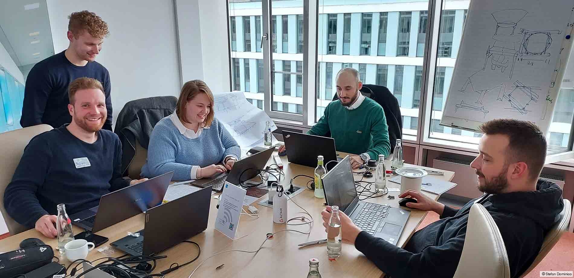 Für die Ausarbeitung ihrer Idee, den Bau eines Prototyps und die Vorbereitung ihrer Präsentation blieb der Gruppe Tag zwei des Events. Die Erfahrung aus dem Vorjahr war dabei Gold wert. „Den intensiven Zeitdruck kannten wir ja schon, deshalb konnten ein wenig entspannter an das Ganze herangehen. Wir waren sicher, auch diesmal alles schaffen zu können“, berichtet Kintscher. Ndiaye ergänzt: „Außerdem sind wir noch strukturierter an die Arbeit herangegangen, haben Recherche- und Feedbackphasen abgewechselt.“ Ihr vielleicht wichtigstes Learning fasst er so zusammen: „Man muss selbst begeistert vom eigenen Konzept sein, dann kann man auch die Jury anstecken.“