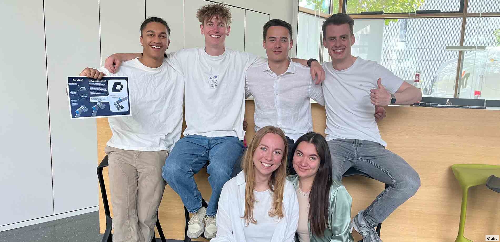 Die Ergebnisse der Teilnehmenden wurden vor einer Jury ähnlich wie im TV-Format „Die Höhle der Löwen“ präsentiert und anschließend bewertet. Gemeinsam belegten unsere Studierenden Julius Kintscher, Silim Ndiaye, Antonia Kurtz, Tanja Detzel und Dominik Boschner, allesamt Studierende im vierten Semester der Studiengänge Maschinenbau und Produktentwicklung und Technisches Design (PED), mit Jonathan Marquardt, Psychologie-Student der Universität Konstanz, den vierten von insgesamt 13 Plätzen für unsere Hochschule.